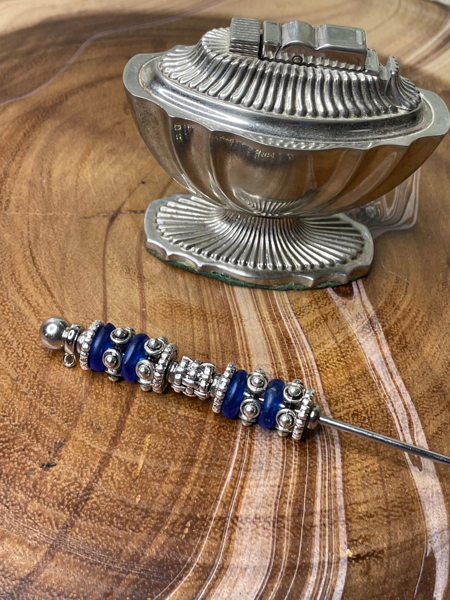 "Bring Back the Funk" and turn up the volume on your smoke jewelry with this beautiful blue and silver poker!